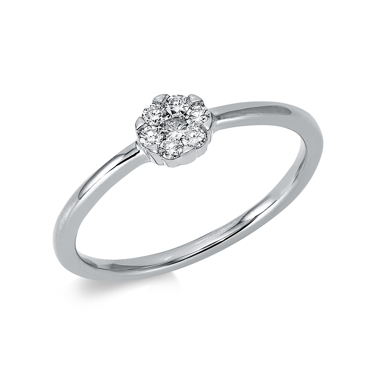 Ring 18 kt WG Kreis, 1 Brill. 0,06 ct, TW-si, 6 Brillanten 0,10 ct, TW-si, Weite:54