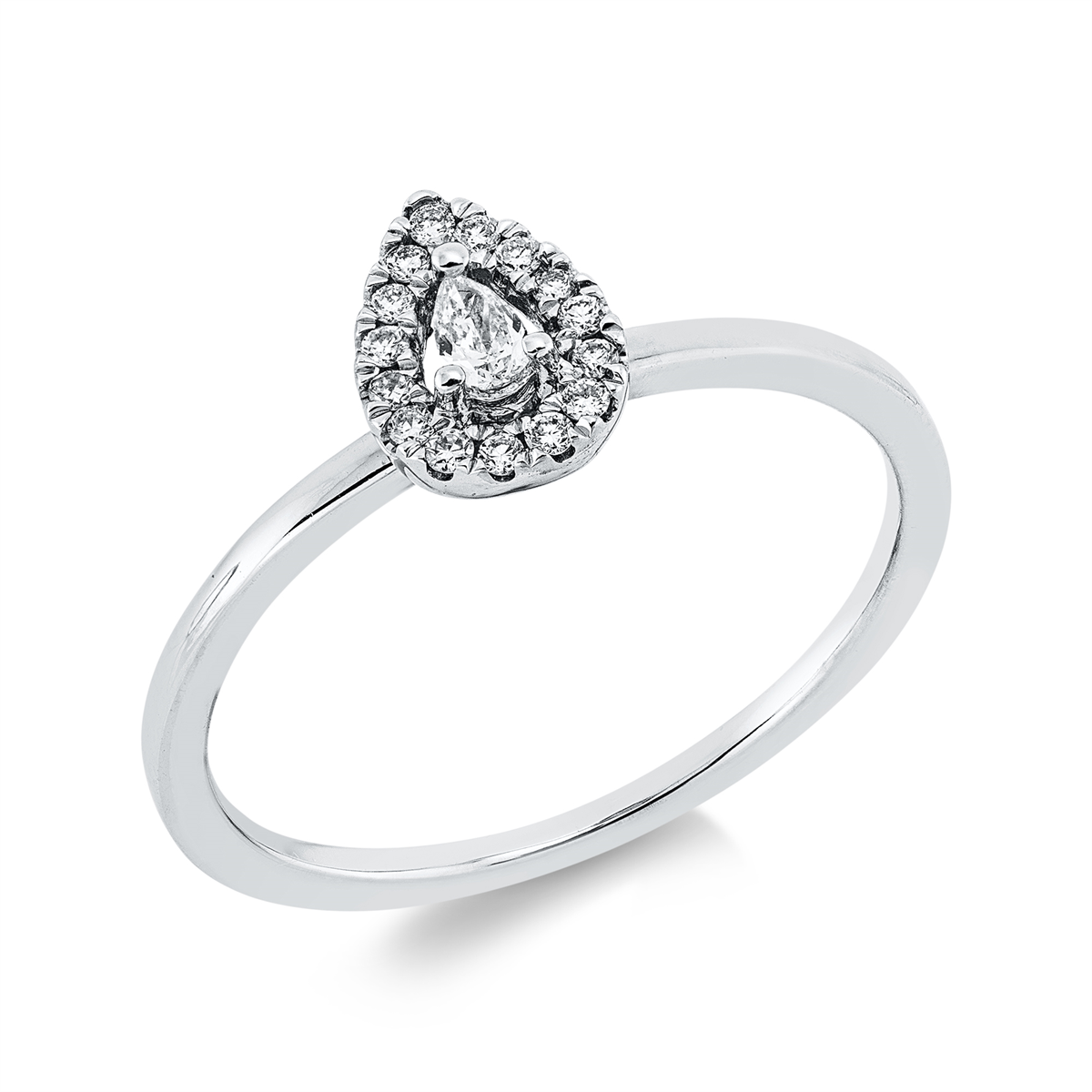 Ring 18 kt WG Tropfen, 1 Tropfen 0,06 ct, TW-vsi, 15 Brillanten 0,07 ct, TW-si, Weite:53