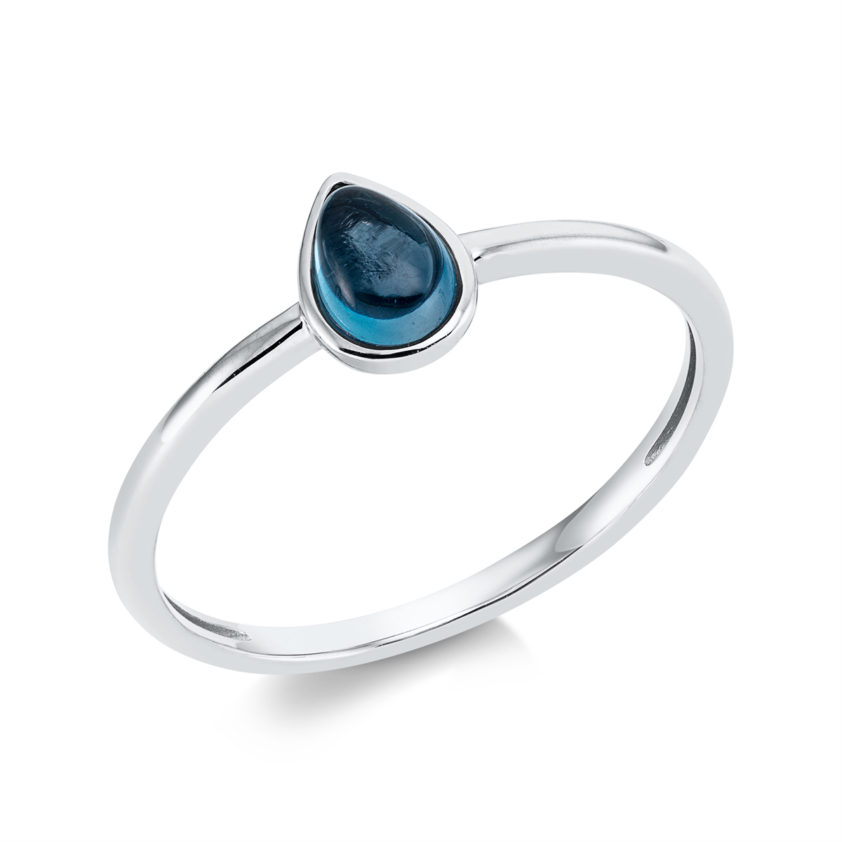 Ring 18 kt WG Tropfen, 1 Topas 0,61 ct Lond. blue, H:5,1 mm, B:6,9 mm, Weite:54