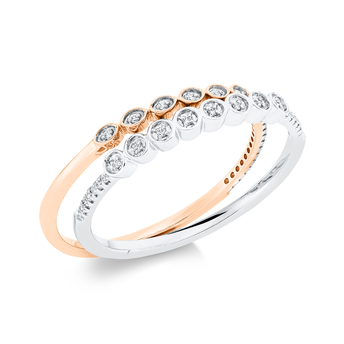Ring 18 kt WG+RG, 14 Brillanten 0,03 ct, TW-si, 28 Brillanten 0,05 ct, TW-si, Weite:54