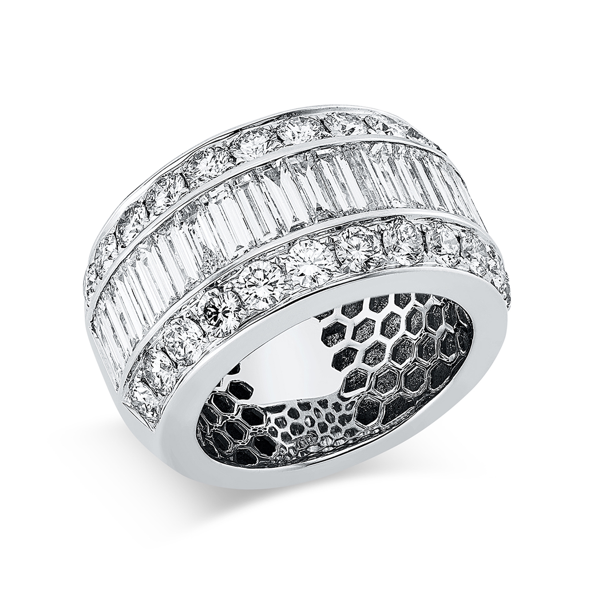 Ring 18 kt WG, 23 Baguette 2,06 ct, TW-vsi, 24 Brillanten 2,10 ct, TW-vsi, Weite:53