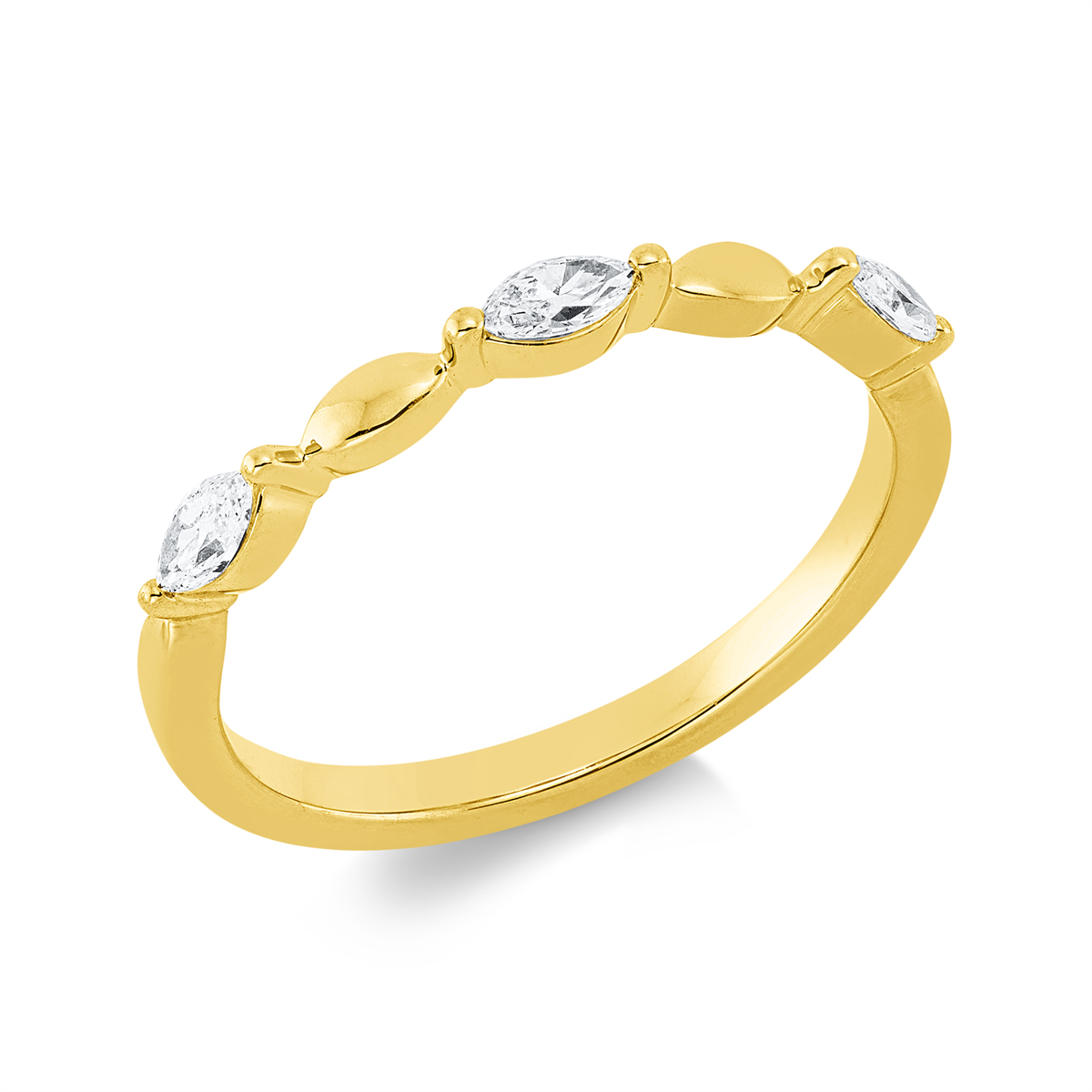 Ring 2er-Krappe 18 kt GG, 3 Navette 0,20 ct, TW-si, B:2,3 mm, Weite:54