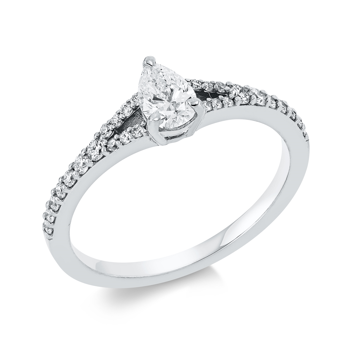 Ring 3er-Krappe 18 kt GG Tropfen, 1 Tropfen 0,31 ct, TW-si, 28 Brillanten 0,20 ct, TW-si, H:4,4 mm, B:5,9 mm, Weite:52
