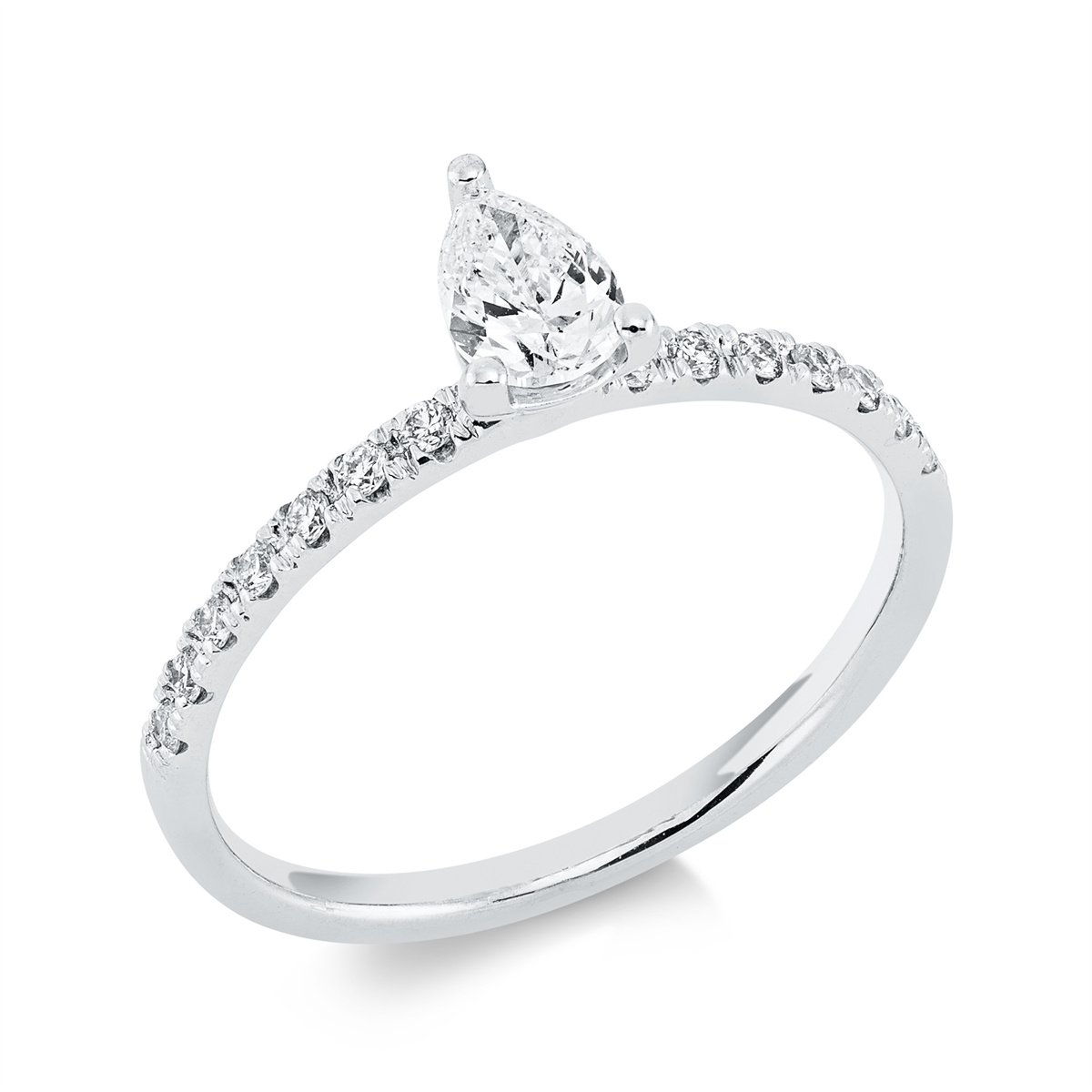 Ring 3er-Krappe 18 kt WG Tropfen, 1 Tropfen 0,32 ct, F-vsi/si, 14 Brillanten 0,15 ct, F-si, Weite:53