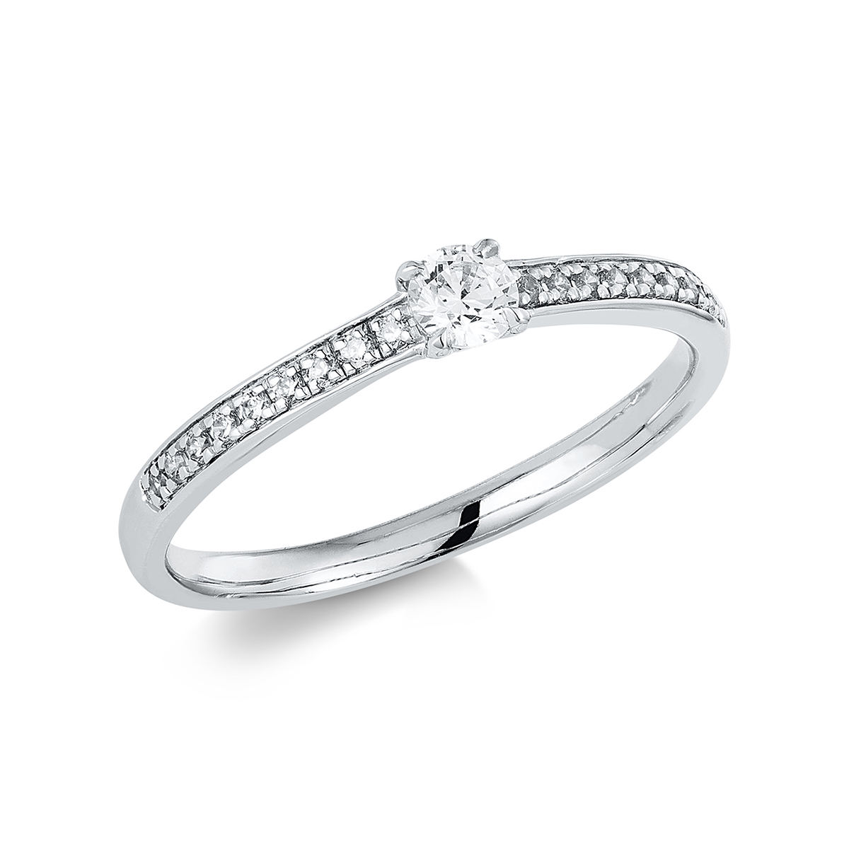 Ring 4er-Krappe 14 kt WG, 1 Brill. 0,15 ct, TW-si, 18 Brillanten 0,10 ct, TW-si, Weite:50