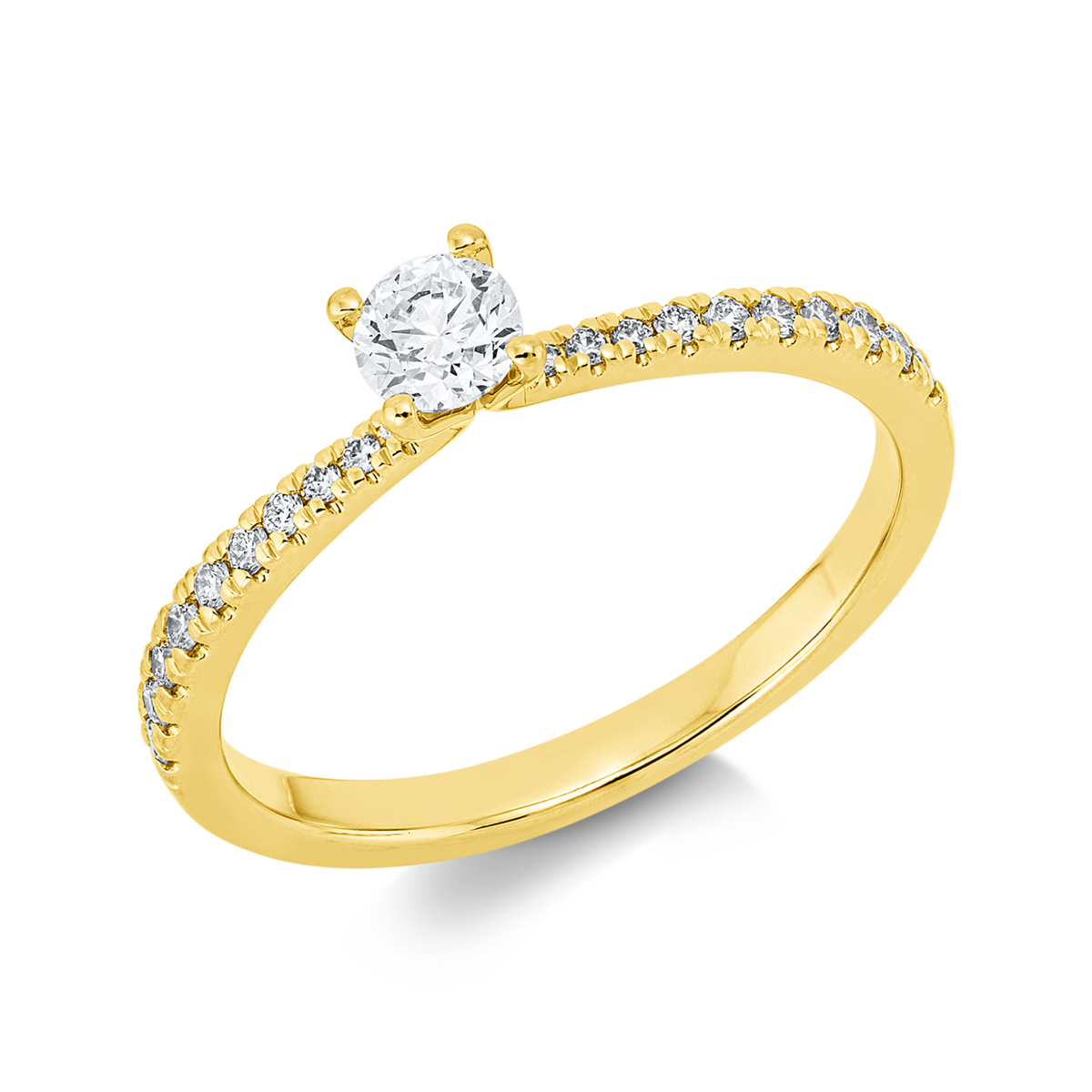 Ring 4er-Krappe 18 kt GG, 1 Brill. 0,25 ct, TW-si, 20 Brillanten 0,15 ct, TW-si, Weite:54