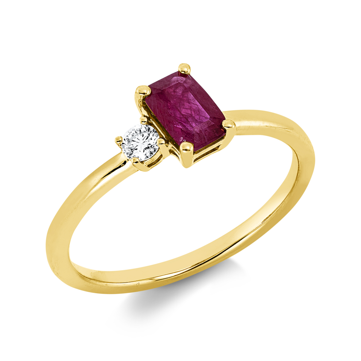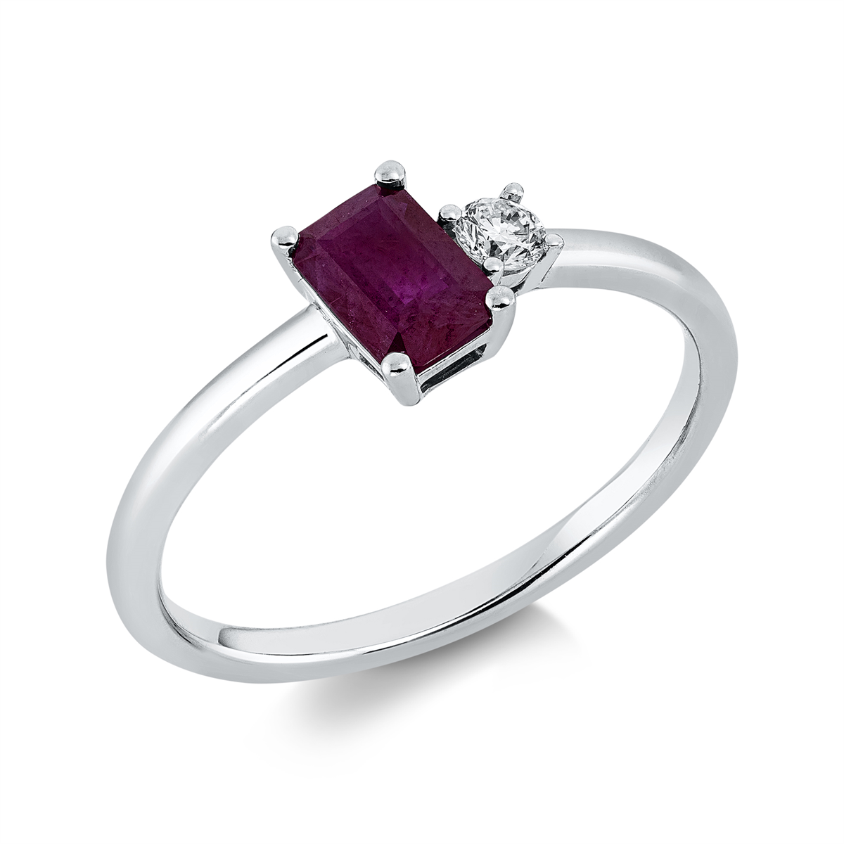 Ring 4er-Krappe 18 kt GG, 1 Brill. 0,08 ct, TW-si, 1 Rubin 0,67 ct rot, Weite:54