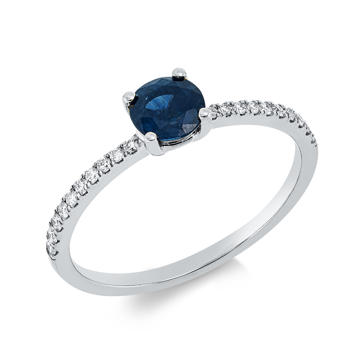 Ring 4er-Krappe 18 kt GG, 20 Brillanten 0,13 ct, TW-si, 1 Saphir 0,69 ct blau, H:5,0 mm, B:5,1 mm, Weite:54