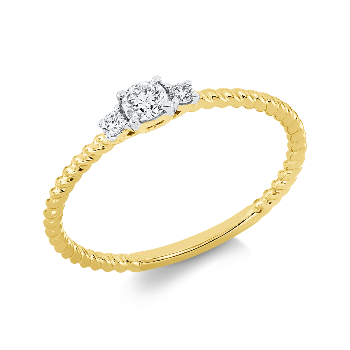 Ring 4er-Krappe 18 kt GG, Fassung rhodiniert, 1 Brill. 0,11 ct, TW-si, 2 Brillanten 0,04 ct, TW-si, Weite:54
