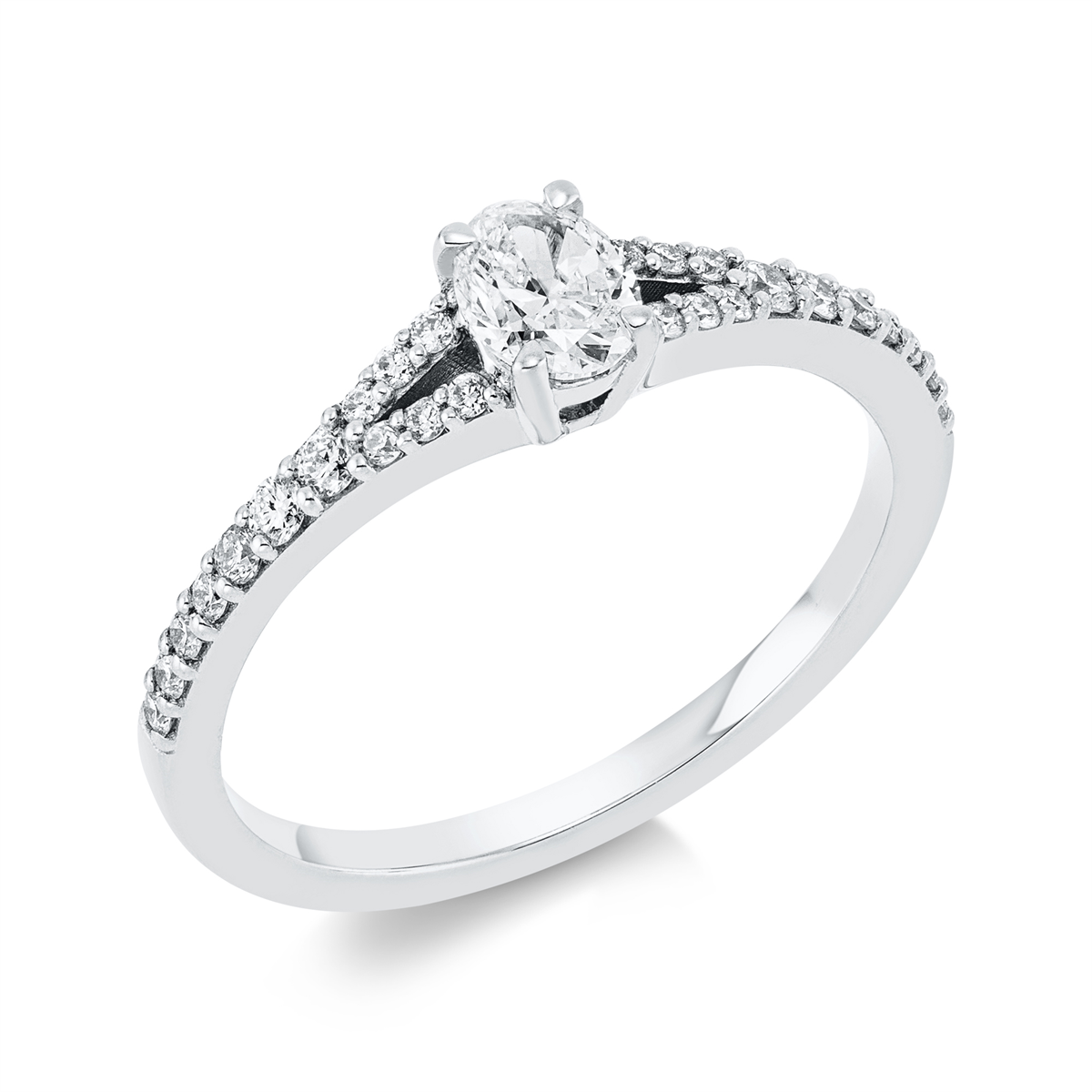 Ring 4er-Krappe 18 kt RG, 1 Oval 0,31 ct, TW-si, 26 Brillanten 0,20 ct, TW-si, H:3,7 mm, B:4,9 mm, Weite:52,5