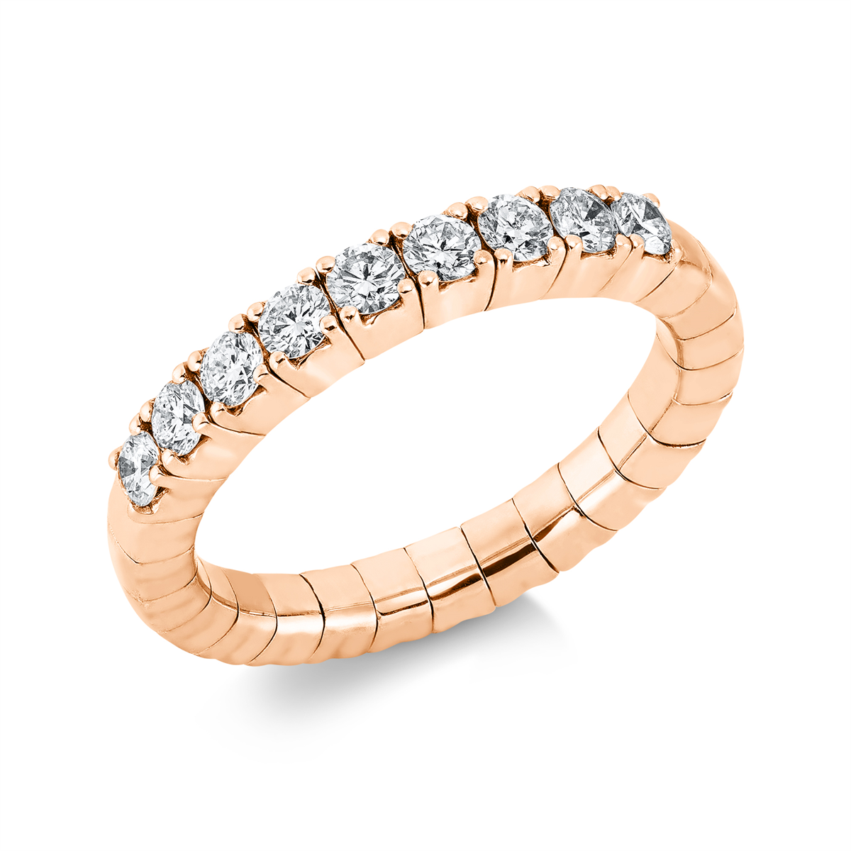 Ring 4er-Krappe 18 kt RG, Flex-Band, variabel, 9 Brillanten 0,62 ct, TW-si, S:3,3 mm, Weite:54
