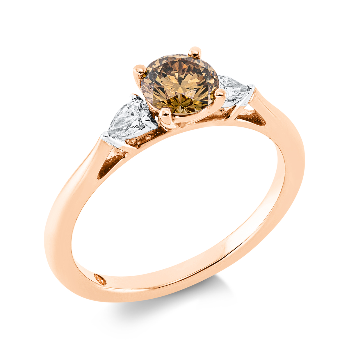 Ring 4er-Krappe 18 kt RG+WG, GIA 6227303667, 1 Brill. 0,01 ct, TW-si, 1 Brill. 0,64 ct, braun-si, 2 Tropfen 0,16 ct, TW-vsi/si, Weite:53