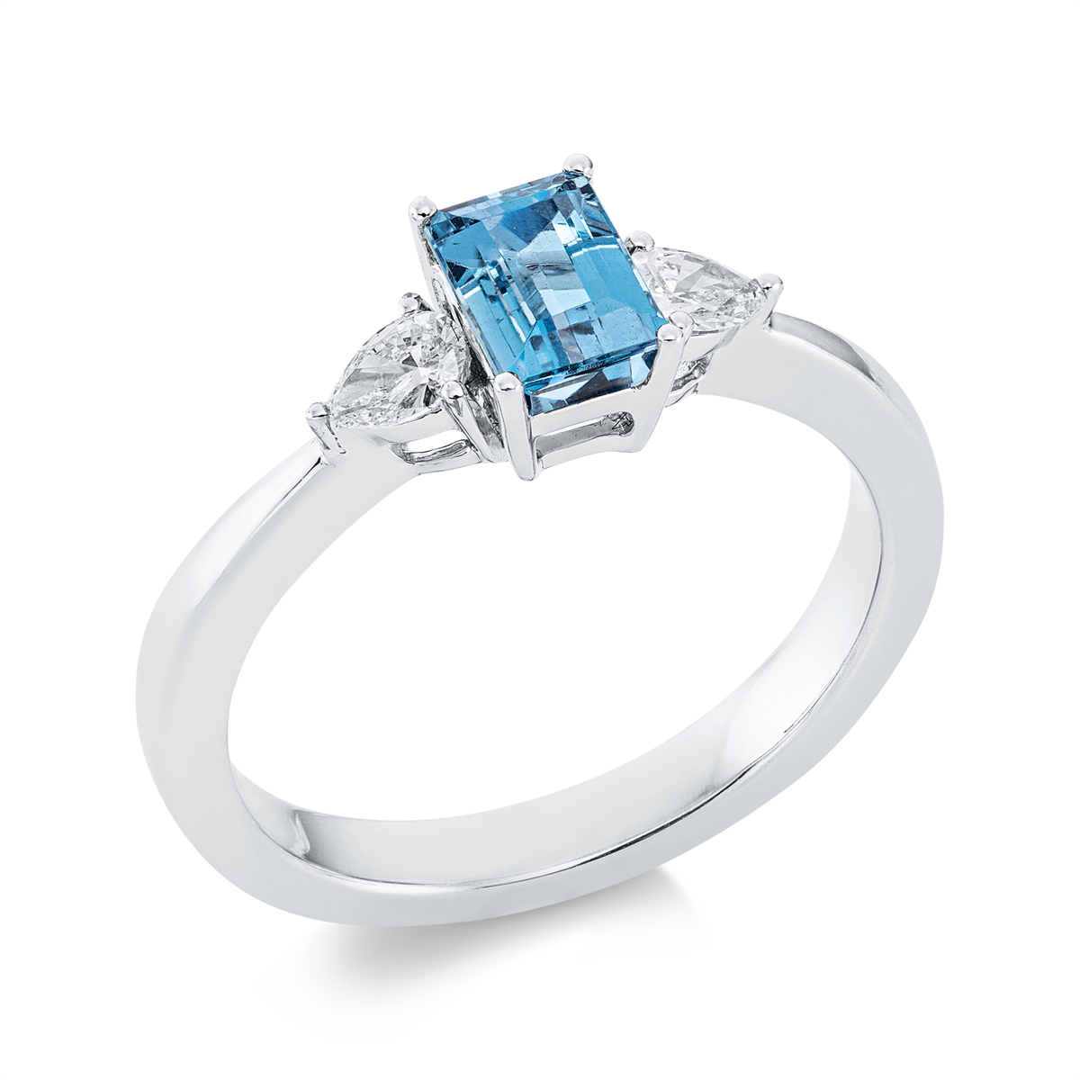 Ring 4er-Krappe 18 kt WG, 2 Tropfen 0,22 ct, TW-vsi, 1 Aquamarin 0,86 ct blau, Weite:54