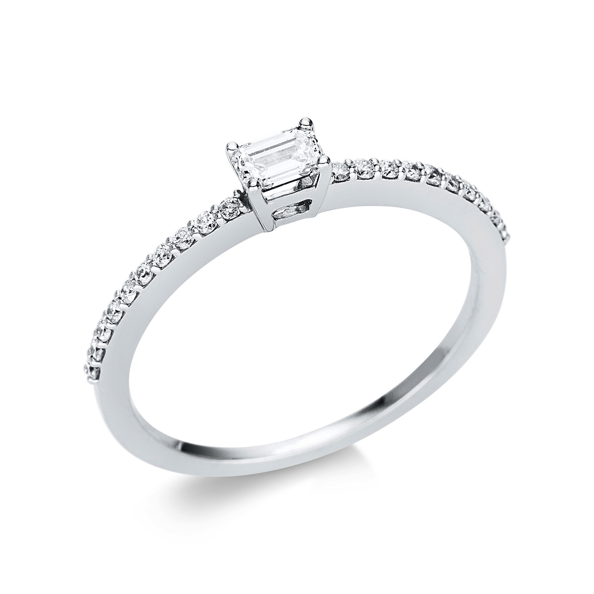 Ring 4er-Krappe 18 kt WG, 1 Sm.schliff 0,20 ct, TW-si, 20 Brillanten 0,13 ct, TW-si, Weite:54