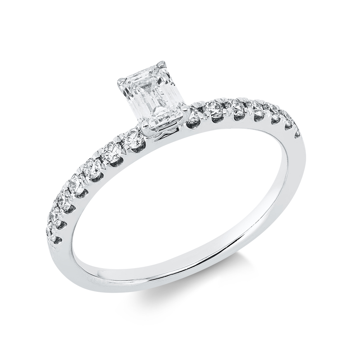 Ring 4er-Krappe 18 kt WG, 1 Sm.schliff 0,41 ct, TW-si, 14 Brillanten 0,24 ct, TW-si, Weite:55