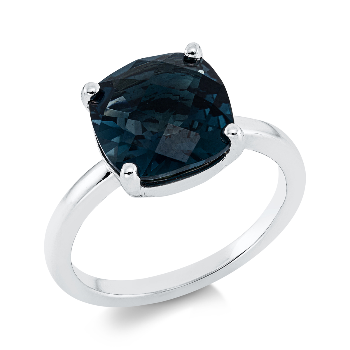 Ring 4er-Krappe 18 kt WG, 1 Topas 4,10 ct Lond. blue, H:10,0 mm, B:10,0 mm, Weite:54