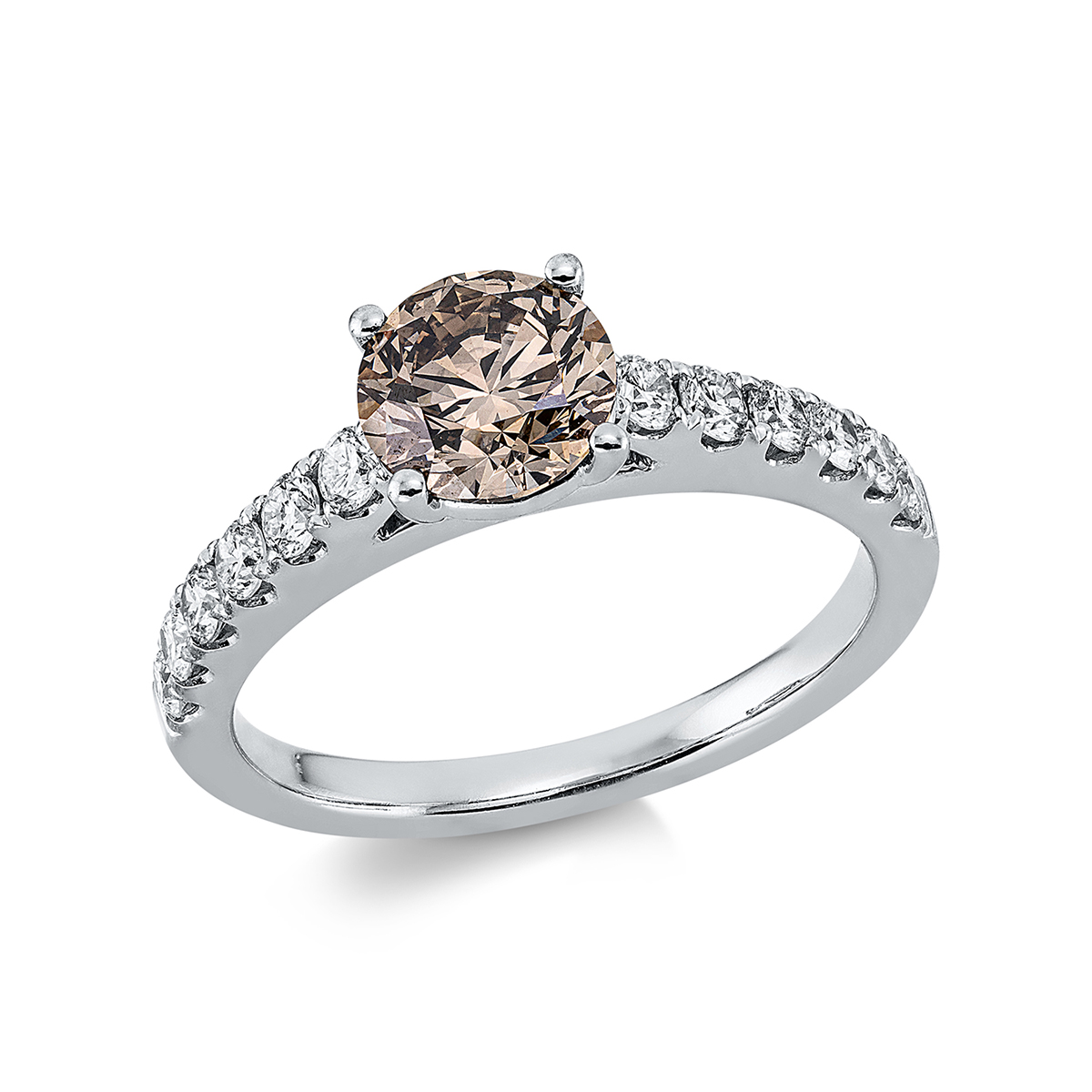 Ring 4er-Krappe 18 kt WG, GIA6224193868, 12 Brillanten 0,43 ct, TW-vsi/si, 1 Brill. 1,01 ct, braun, Weite:53