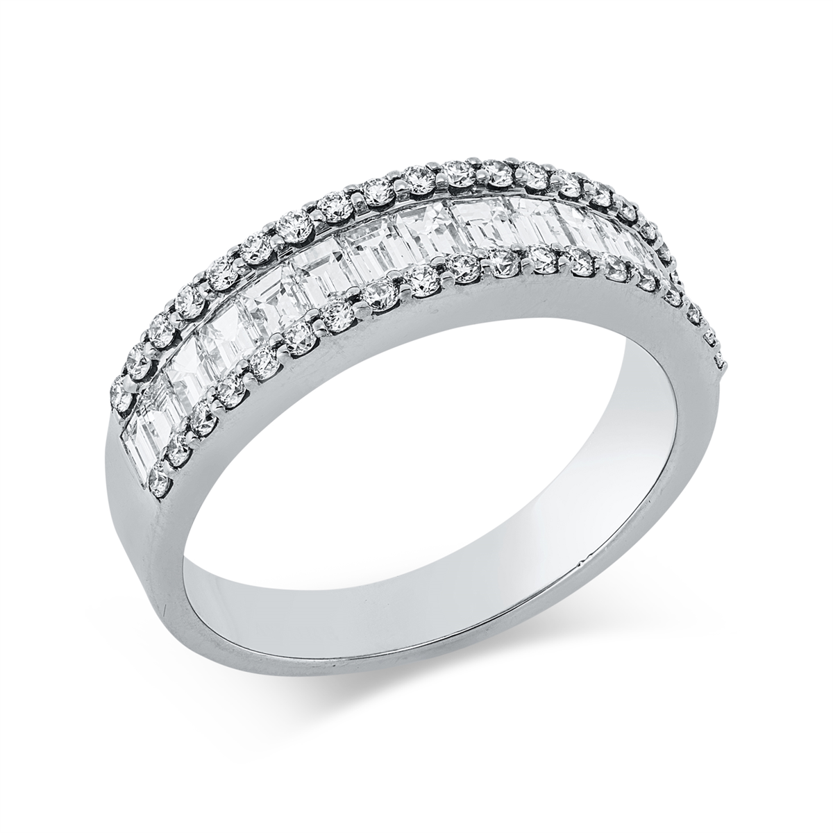 Ring 950 Pt Platin, 15 Baguette 0,90 ct, TW-vsi/si, 38 Brillanten 0,31 ct, TW-vsi/si, B:6,0 mm, Weite:54