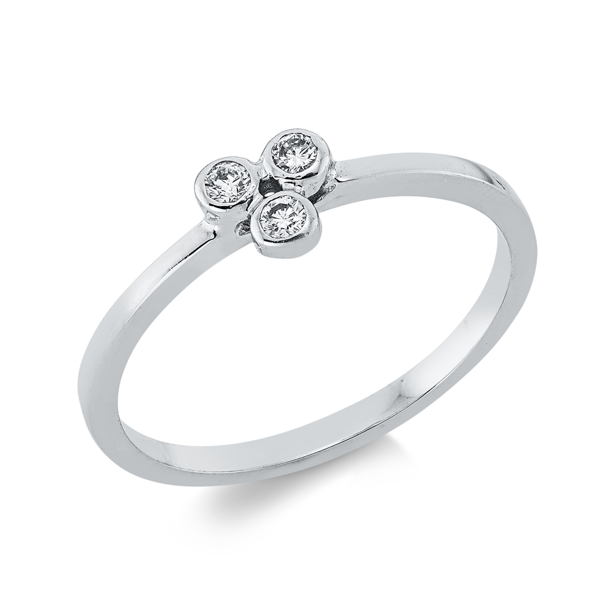 Ring Zarge 14 kt WG, 3 Brillanten 0,08 ct, F-si, Weite:53