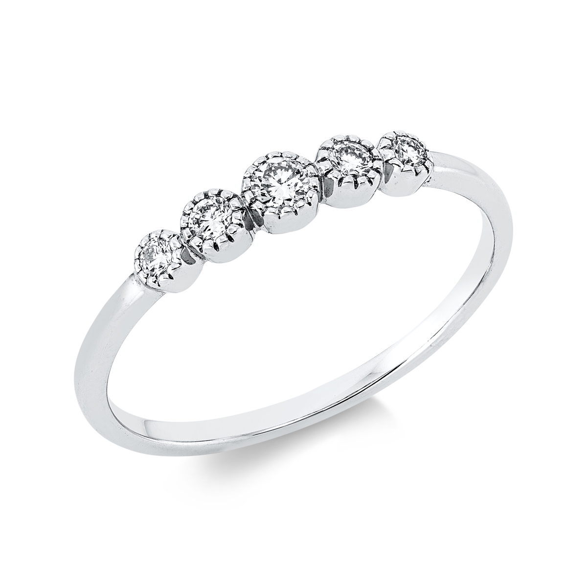 Ring Zarge 18 kt WG, 1 Brill. 0,06 ct, W-si, 4 Brillanten 0,10 ct, W-si, Weite:54