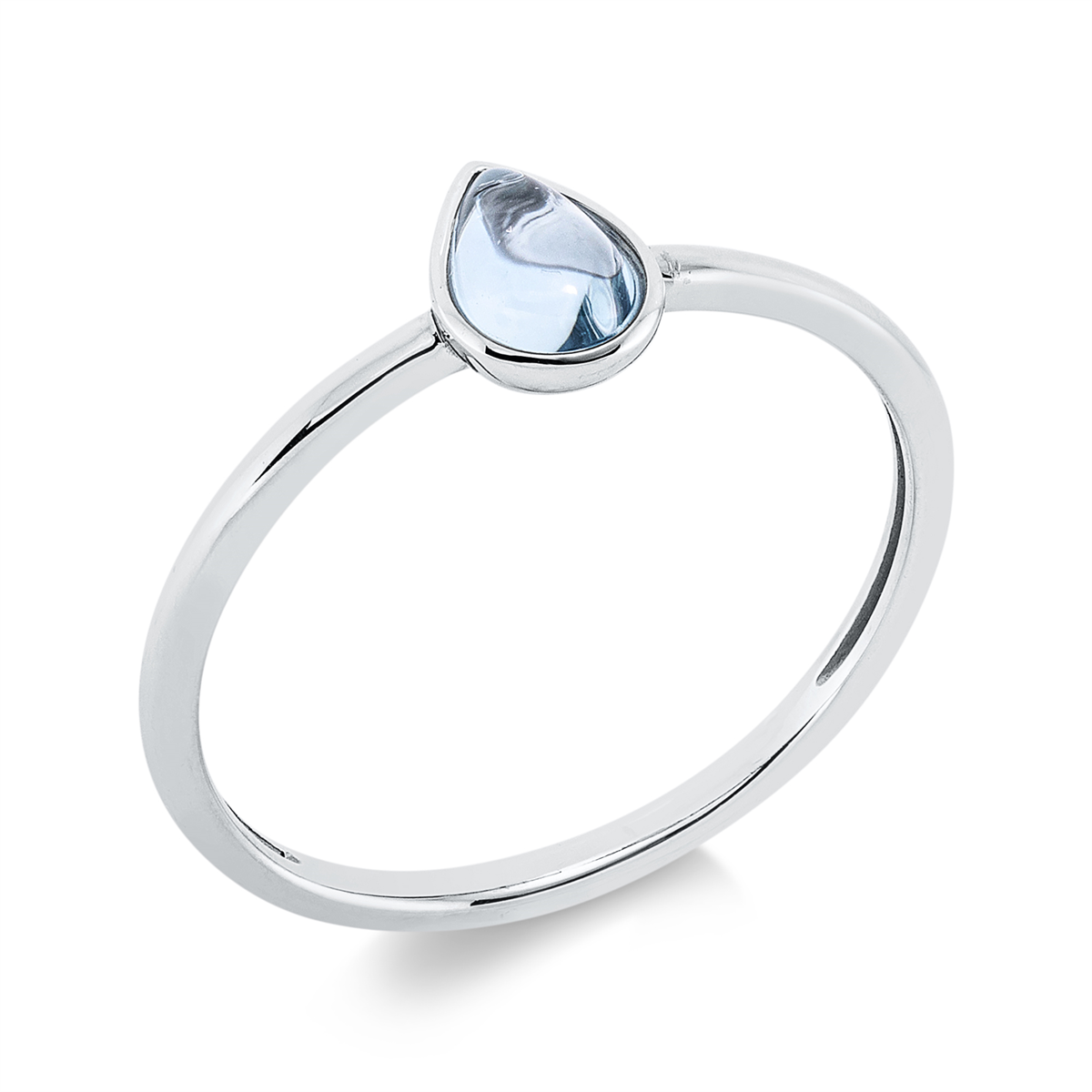 Ring Zarge 18 kt WG Tropfen, 1 Topas 0,47 ct sky blue, Weite:54