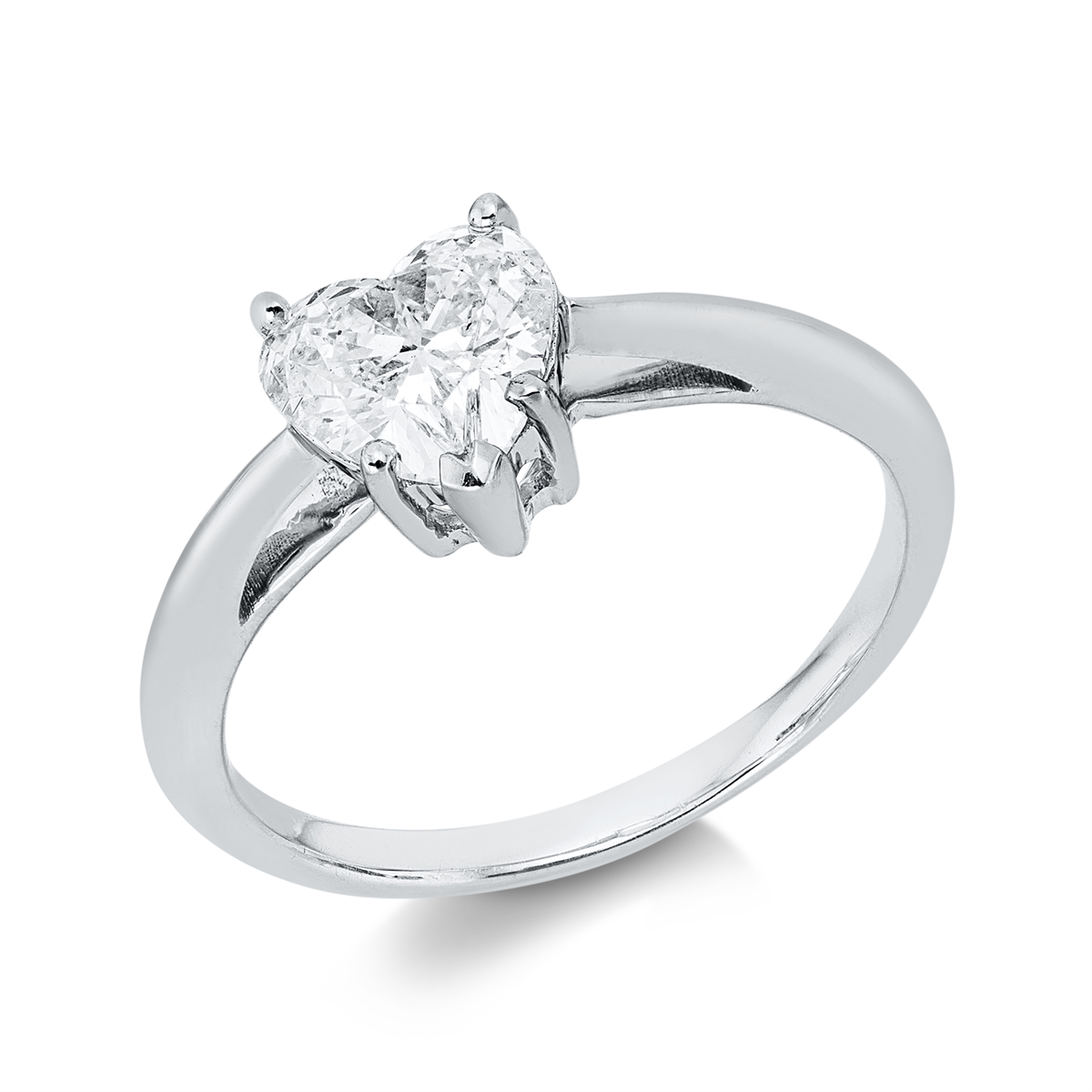 Ring 18 kt WG, GIA 1233526643, 1 Herzschl. 0,80 ct, F-si1, H:6,7 mm, B:7,2 mm, Weite:50,5