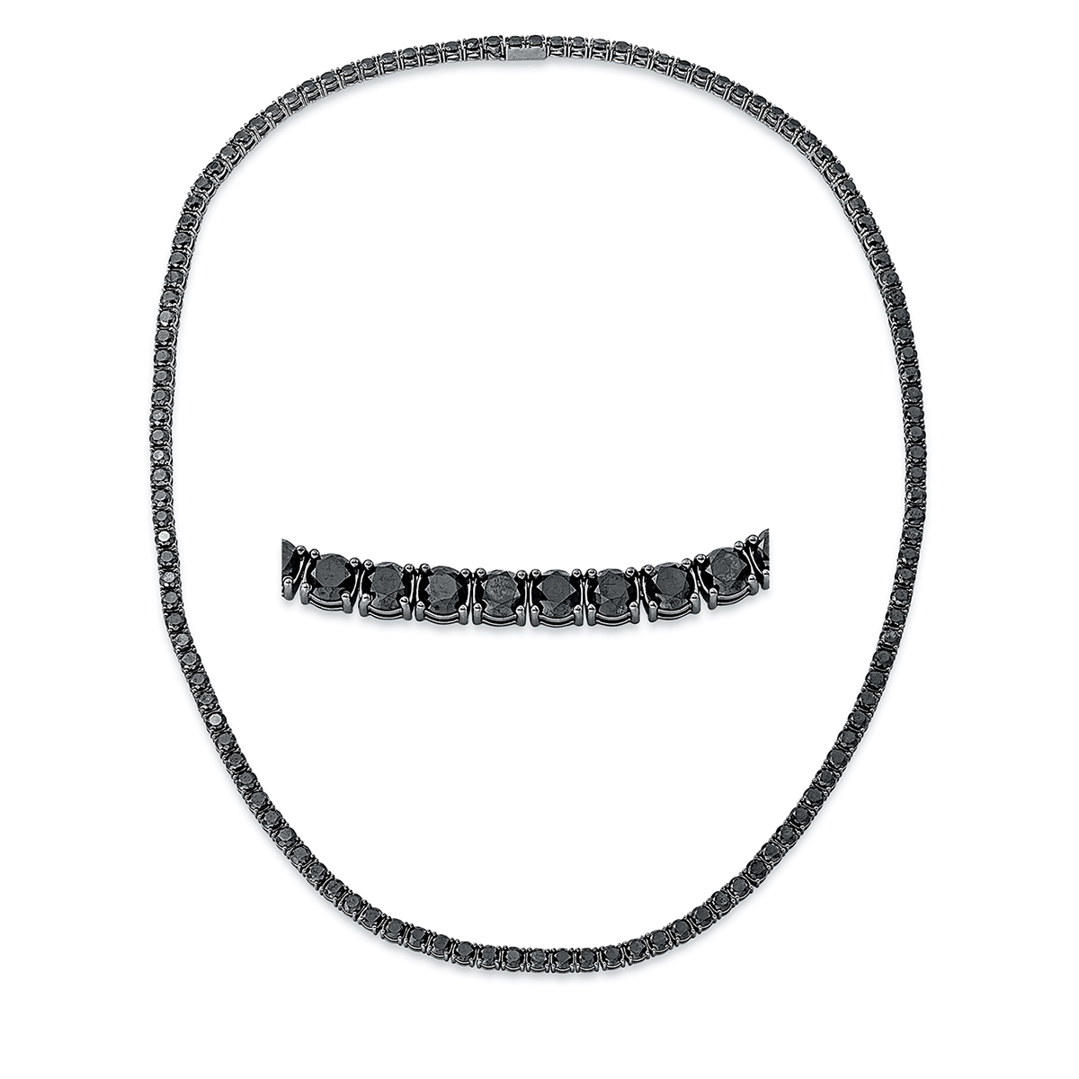 Tenniscollier 4er-Krappe 18kt Weißgold schwarz rhodiniert mit 47,00ct Diamanten