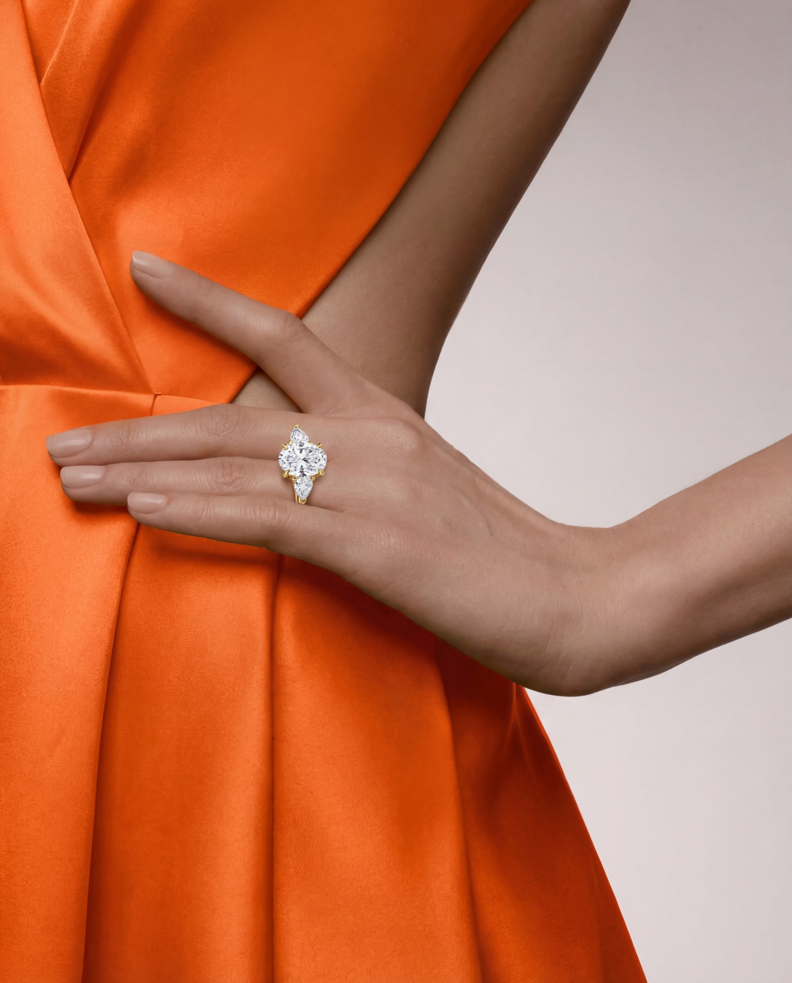 1 Oval-Schliff, 2 Tropfen-Schliff, insgesamt 3.50ct, D-VVS1 ,750K Gelbgold , GIA Zertifikat